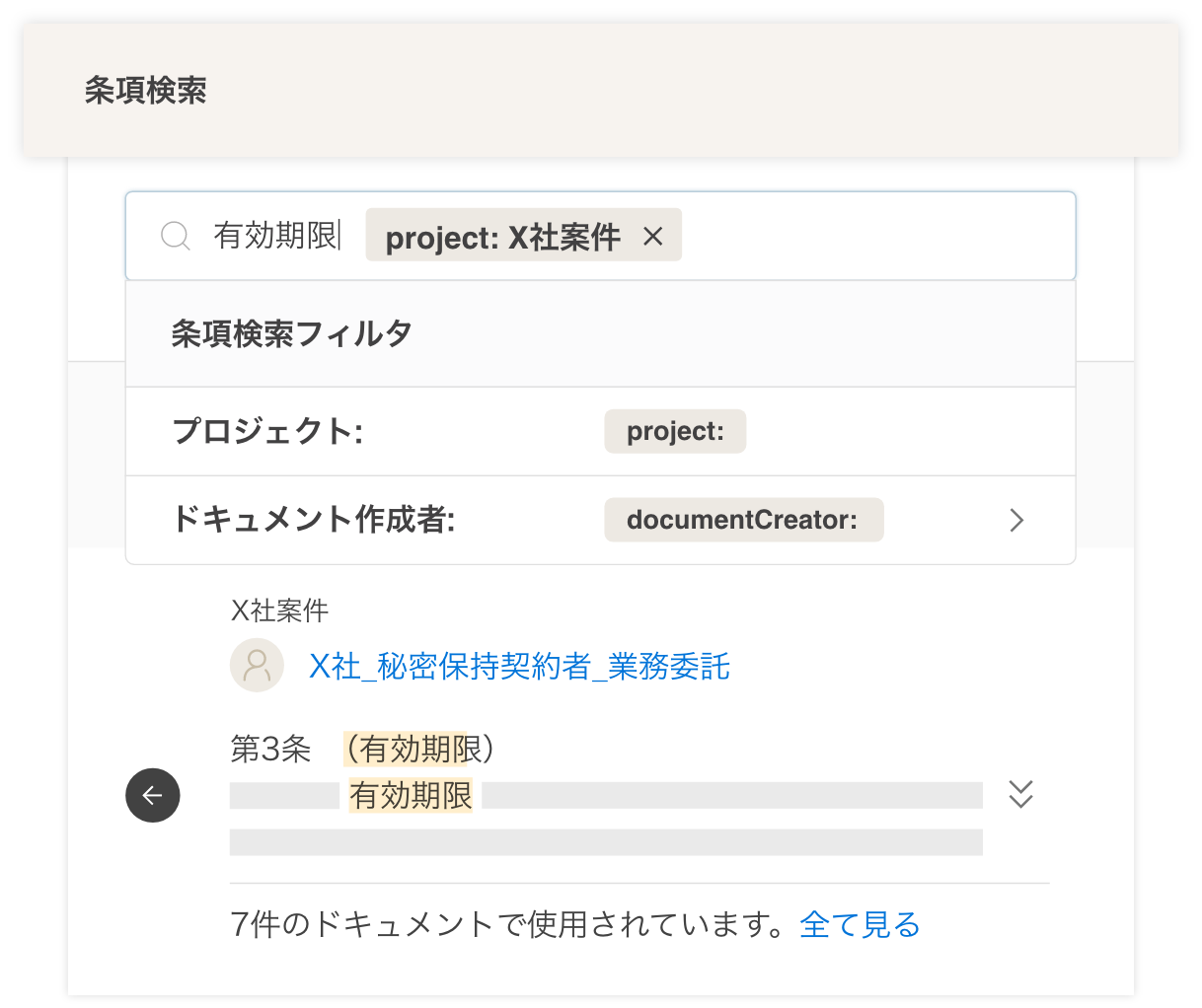 契約書類型を問わない条項単位の欠落条項のサジェスト機能はFRAIM株式会社の保有する特許技術で実現しており、弊社のみが提供可能なものとなります。