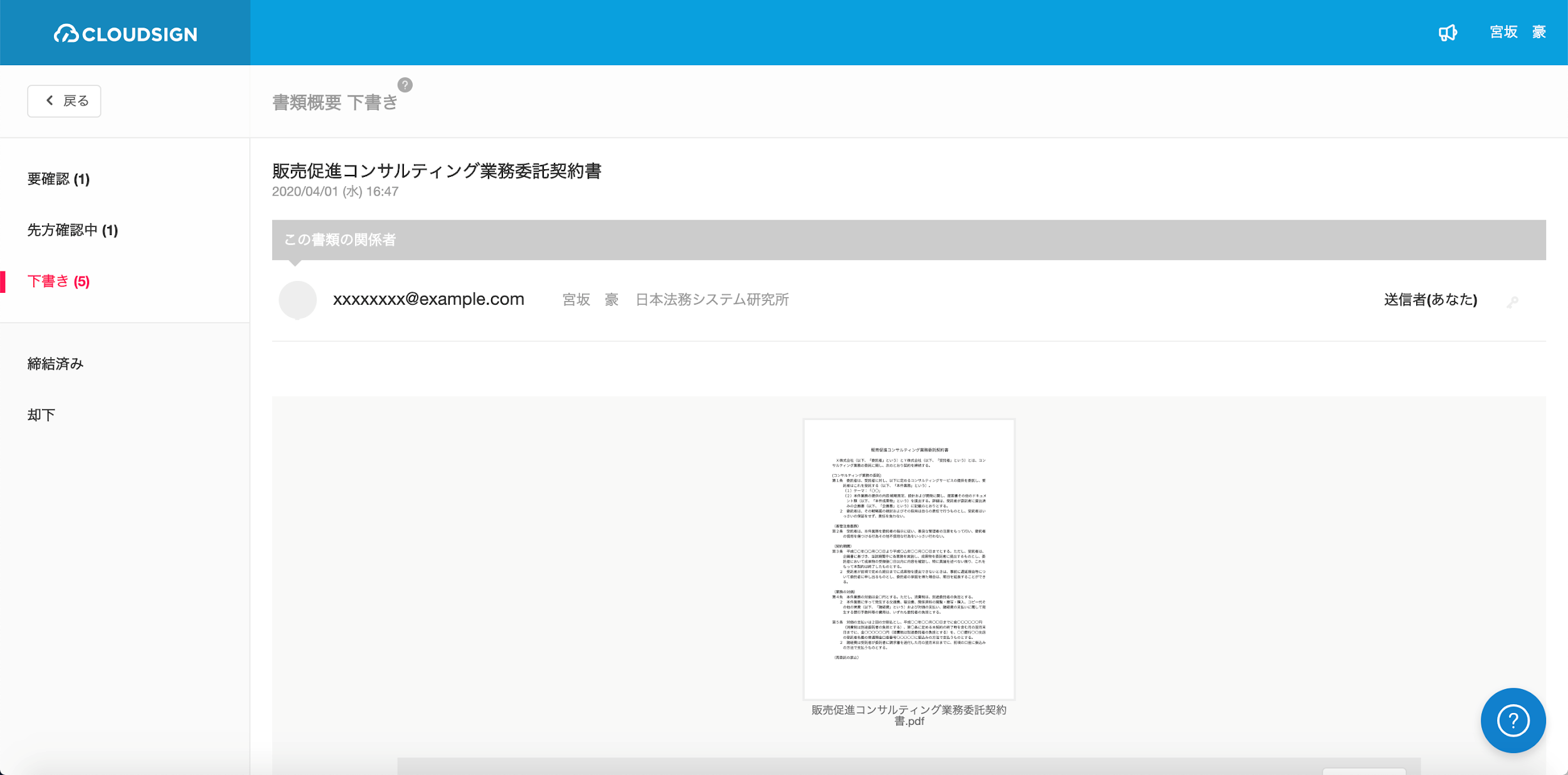 【「クラウドサイン」画面:送信結果のプレビュー】