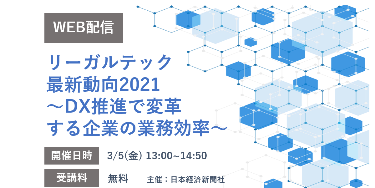 弊社日本法務システム研究所、営業企画部長 山田純希が日経新聞社主催リーガルテック最新動向2021~DX推進で変革する企業の業務効率~フォーラムに登壇いたします。